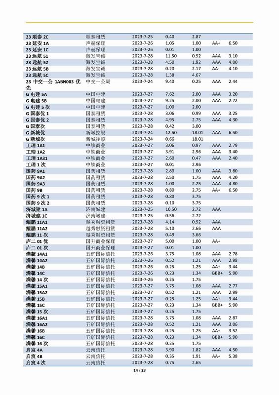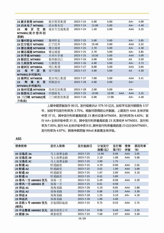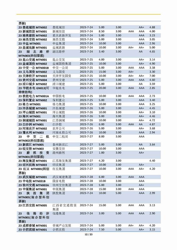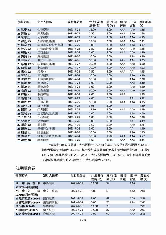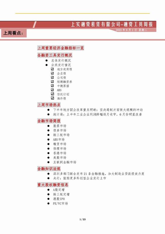 | 當(dāng)前位置:新聞中心 > 上實(shí)-融資工具周報(bào)2023.7.24-2023.7.28 | |||||