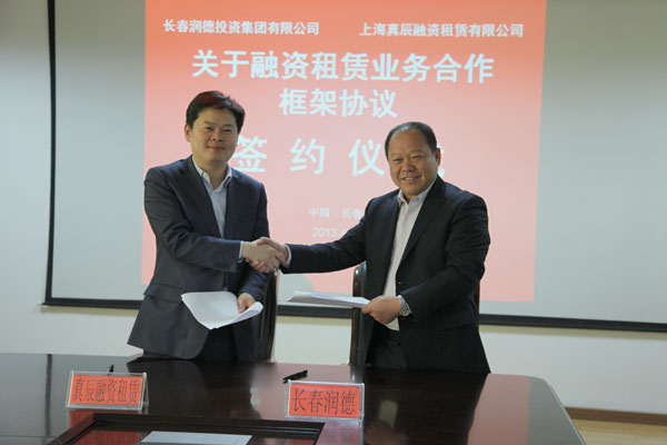 | 當(dāng)前位置:新聞中心 > 2013年4月13日真辰融資租賃與長春潤德投資集團(tuán)戰(zhàn)略合作協(xié)議簽約儀式 | |||||