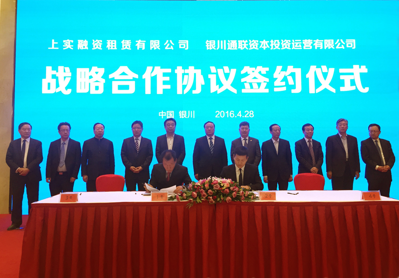 上實(shí)融資租賃有限公司董秘兼投資管理中心總經(jīng)理余旭煜、銀川通聯(lián)資本投資運(yùn)營有限公司董事長張洪林分別代表雙方簽訂50億規(guī)模的戰(zhàn)略合作協(xié)議。上實(shí)融資租賃有限公司為銀川市城市建設(shè)與發(fā)展提供的創(chuàng)新綜合金融服務(wù)方案,得到銀川市委市政府領(lǐng)導(dǎo)的肯定與好評(píng)。