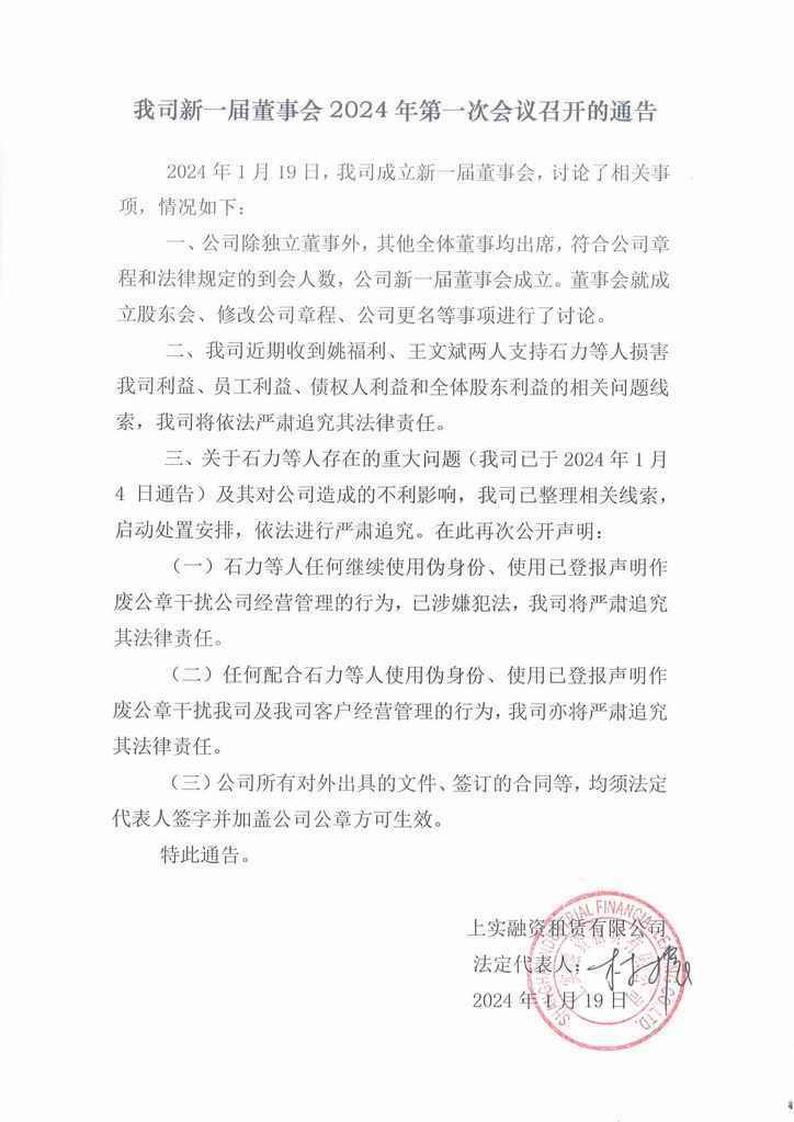 二、我司近期收到姚福利、王文斌兩人支持石力等人損害我司利益、員工利益、債權(quán)人利益和全體股東利益的相關(guān)問(wèn)題線索,我司將依法嚴(yán)肅追究其法律責(zé)任。
