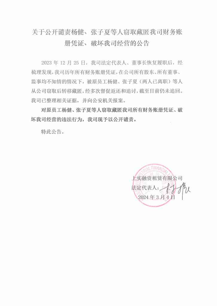 | 當前位置:新聞中心 > 關(guān)于公開譴責楊健、張子夏等人竊取藏匿我司財務(wù)賬冊憑證、破壞我司經(jīng)營的公告 | |||||